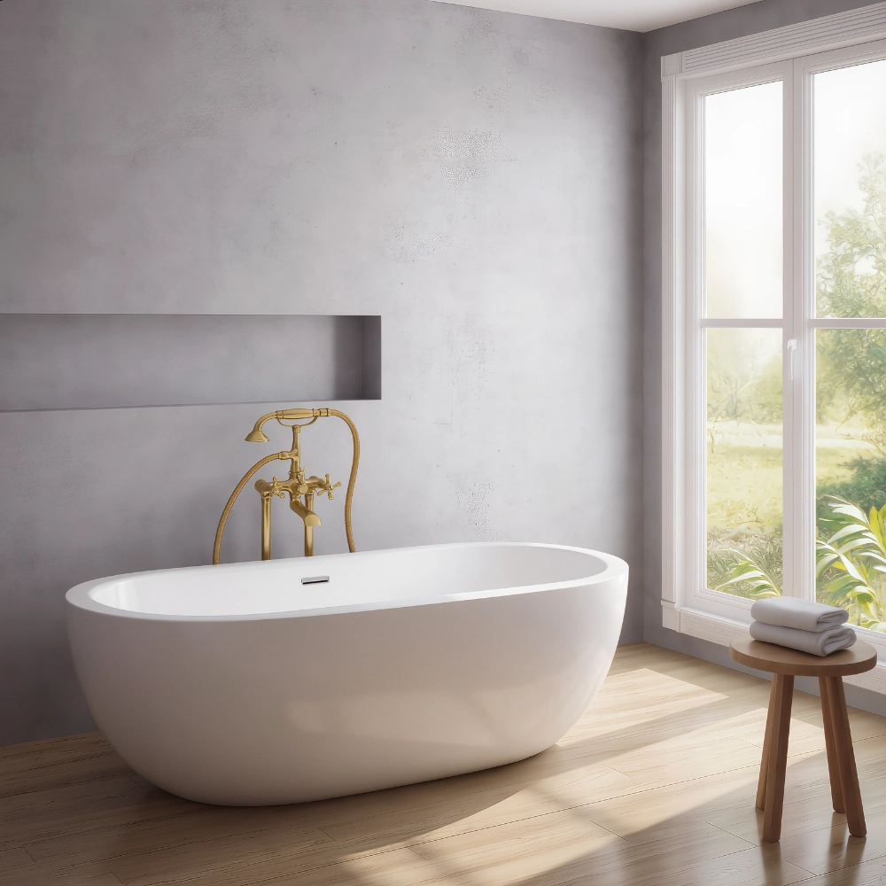 Elevate your bathing experience with the Le Bain brass freestanding tub faucet. Designed to serve as a striking focal point, this brass floormount tub filler seamlessly blends architectural elegance with everyday utility. Crafted for enduring quality, this premium brass bathtub faucet provides a luxurious and timeless centerpiece for the bath.