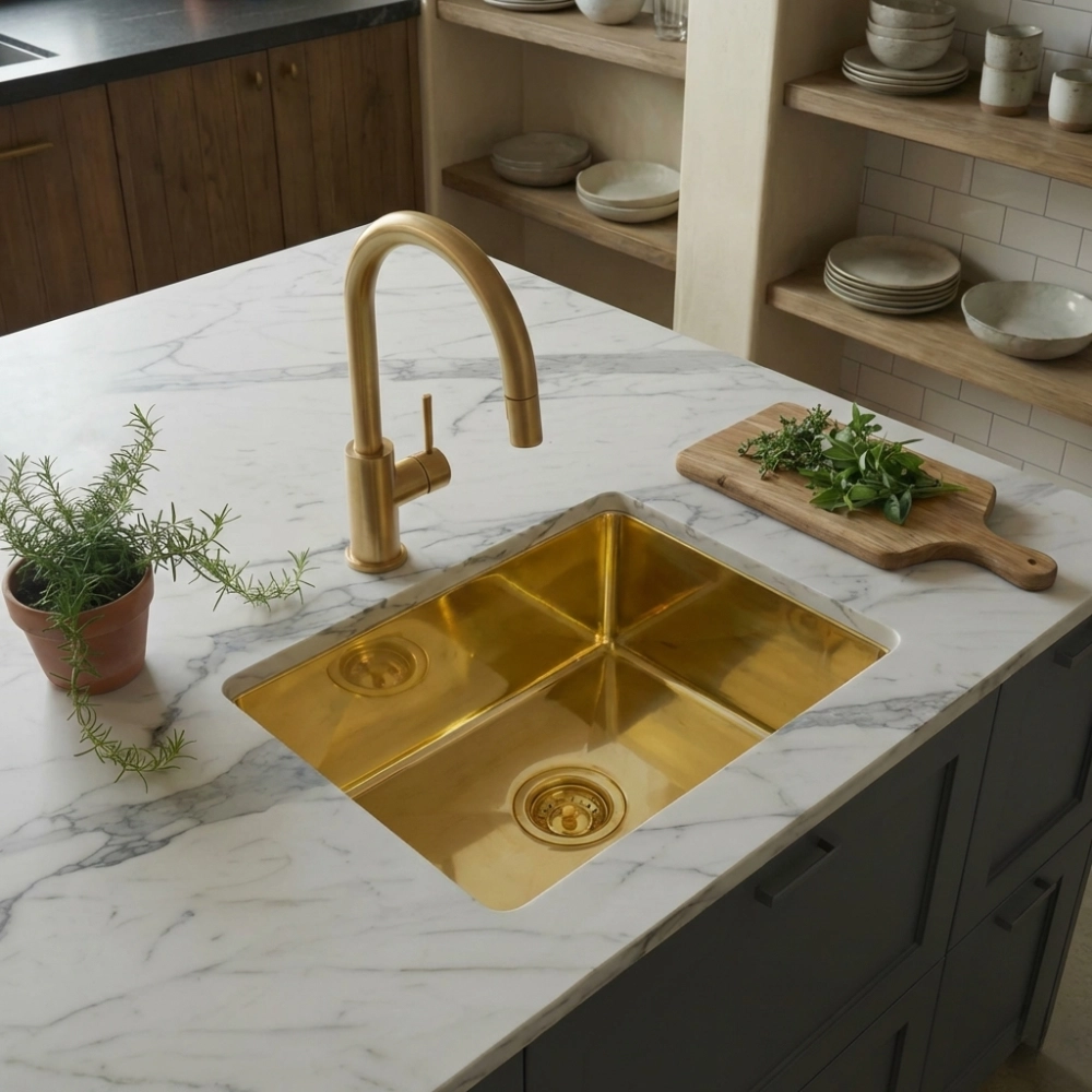 A pure square form in solid brass, defined by clean lines and a mirror-polished surface. Le Carré brings architectural clarity and quiet luxury to contemporary kitchens and bathrooms.